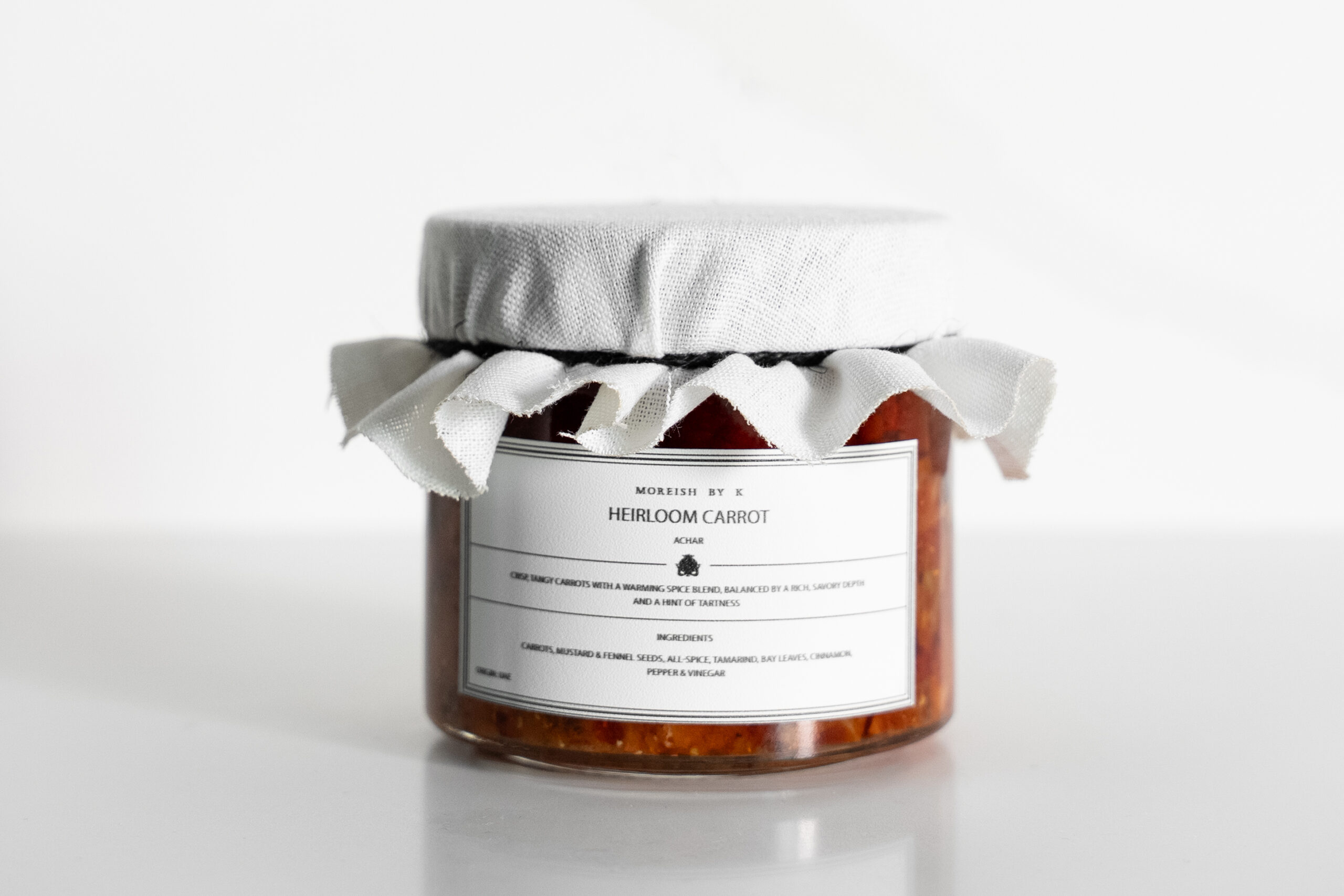 TANGY CARROTS WITH A WARMING SPICE BLEND, BALANCED BY A RICH, SAVORY DEPTH AND A HINT OF TARTNESS INGREDIENTS CARROTS, MUSTARD & FENNEL SEEDS, ALL-SPICE, TAMARIND, BAY LEAVES, CHINAMOK PEPPER & VINEGAR